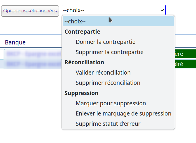 Actions sur plusieurs opérations choisies