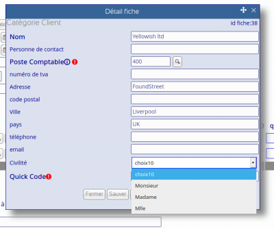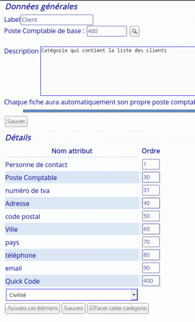 Les catégories de fiche peuvent avoir de nouveaux attributs suivant les besoins : numéro de gsm, numéro de client, remarque privée…