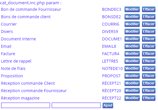 Afficher le texte sourceAnciennes révisionsLiens de retourHaut de page Share via Share via... Twitter LinkedIn Facebook Pinterest Telegram WhatsApp Yammer Reddit TeamsDerniers changementsSend via e-MailImprimerPermalien × CFGCATDOC Vous permet d'ajouter de nouveaux type de documents (bordereau de livraison, devis..) N'hésitez pas à améliorer la documentation, merci menu/cfgcatdoc.txt Dernière modification : 2018/03/27 19:40de loic