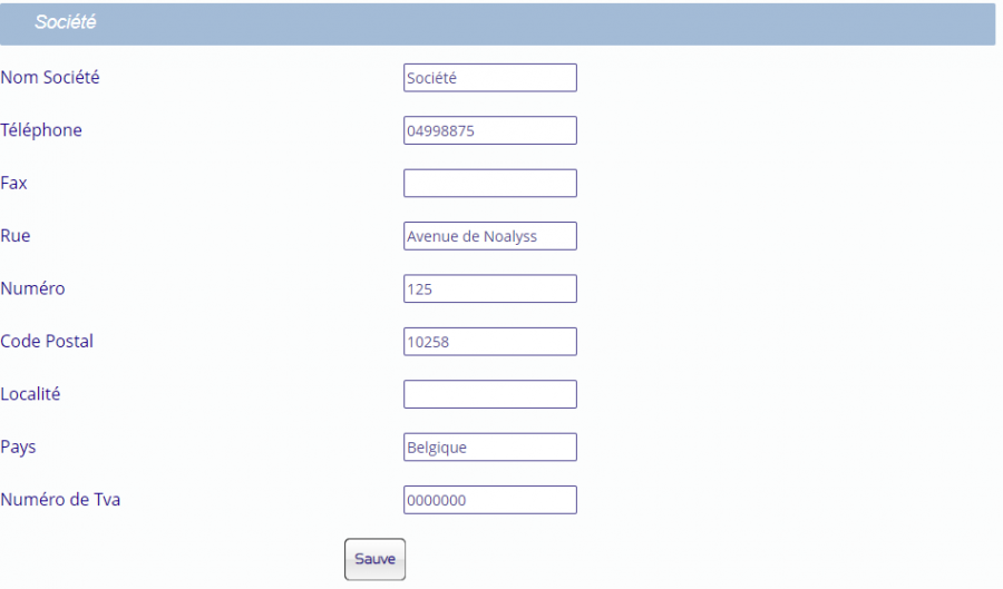 Information sur votre société : nom, adresse… utilisées lors de la génération de documents.