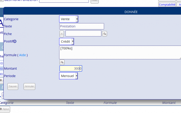 3. Dans chaque catégorie , vous pouvez ajouter des éléments qui vont s'additionner.