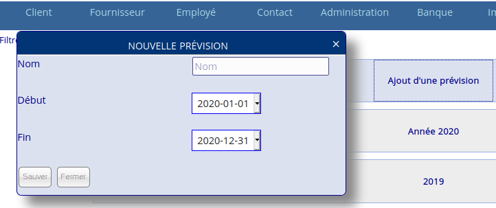 1. Vous crééz une prévision , et vous indiquez la période qui vous intéresse. Dans le cas présent , on utilisera l'exercice comptable