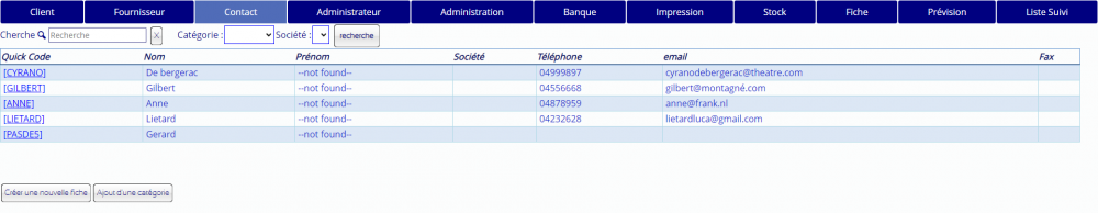 Menu : Gestion/contact C'est le regroupement des données essentielles du contact.