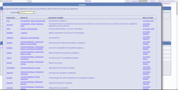 La dernière méthode de navigation consiste simplement à se rendre sur le navigateur et taper un mot clef qui correspond à l'opération recherchée.