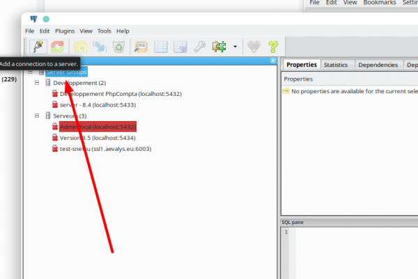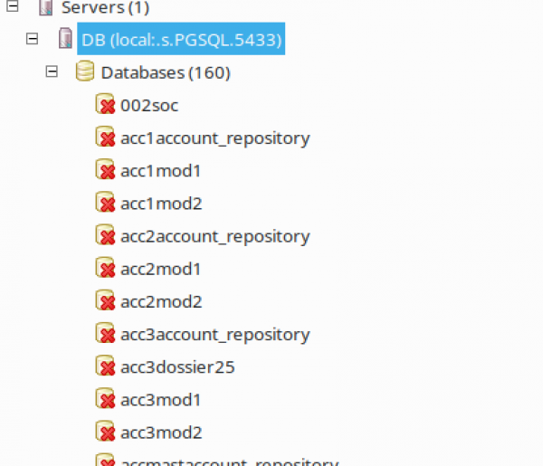 2. Double-cliquer sur le serveur, la liste des bases de données va défiler