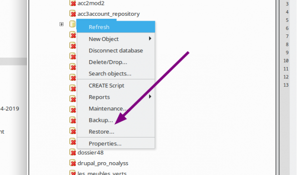 psql --host Host --port Port --username noalyss_user --echo-all --no-psqlrc --file votre_fichier_backup dossierXX