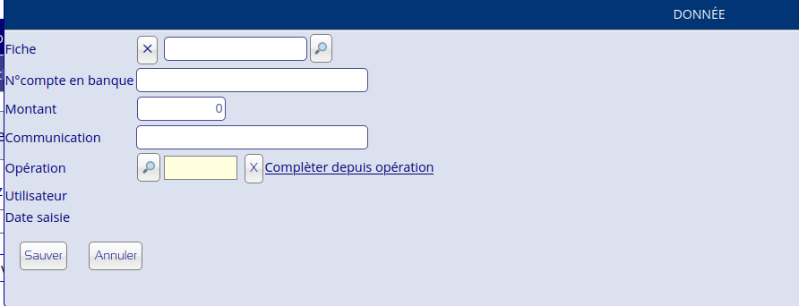 Dans la liste des paiements , cliquez sur Ajout et soit vous retrouvez l’information depuis l’opération liée soit vous introduisez toutes les informations nécessaires.