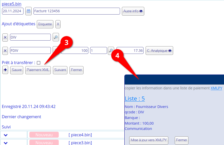 Après avoir chargé vos documents, vous les complètez et vous pouvez copier les informations dans XMLPY.